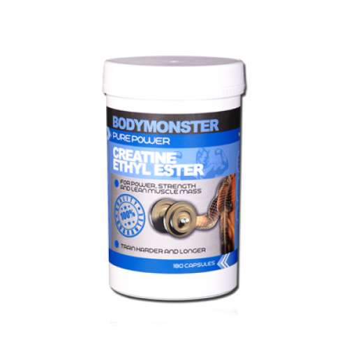 Creatine capsules are a 2-3 month supply for increasing performance when working out. Body Monster Creatine ethyl ester is ideal for people looking to achieve a better performance. Creatine is used to provide extra energy in muscles when working out therefore allowing more power to trainer harder for longer. This will show results in lean muscle mass and should make you feel better when working out. This type of creatine is a more pure source and penetrates directly into the muscle cell. The capsules are easy to swallow and provide no water retention. Feel the power.